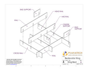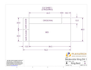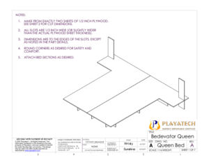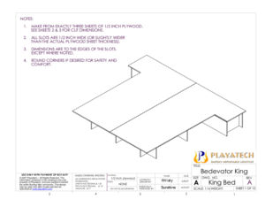 To truly live like royalty, the Bedevator King lifts your bed 12” off the ground, also includes Nightstands, and even includes the world’s first Playa Safe! The Playa Safe securely holds nearly 2 cubic feet of worldly possessions under lock and key so you can leave your tent in peace. The entire Bedevator King requires just three sheets of ply, and securing the safe requires an additional six “L” brackets, a hinge, a hasp and a lock.