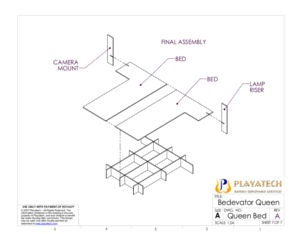 he queen size Bedevator lifts your bed 10” off the ground and contains insulating air compartments underneath it for a warm sleep. It’s easy to store shoes or gear bins under each edge. And it even includes built in Nightstands! All for the price of 2 sheets of ply.