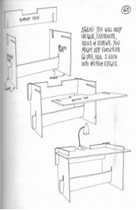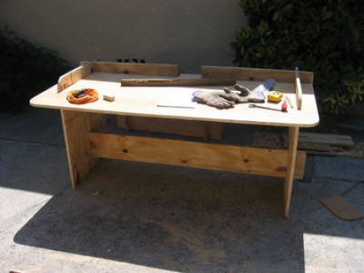 In Black Rock City, we’ve seen people soldering, welding, gluing, emailing, and doing otherwise normal work in the strangest places and positions. That’s because no one has a desk or a workbench! Why not? Because no one ever figured out how to build their own from a single sheet of plywood until 1972! And news travels slow sometimes.