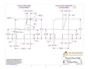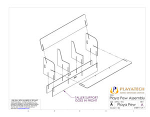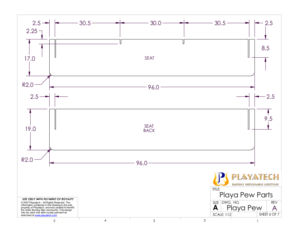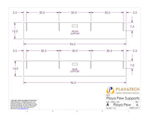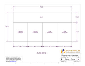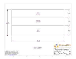 The new Playa Pew uses exactly the same design as the Playa Love Seat with the addition of two center supports. Each center support is exactly like one of the side supports, only the slots for the seat and seatback get continued all the way until they meet, which cuts the front top of the support away (so you can sit there; duh). The center supports push down onto slots in the front/rear supports just as the side supports do to help stabilize the whole base as a trussed box structure, and they help support the seatback from bowing along its long length.