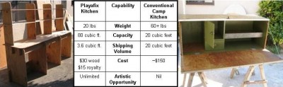 Playatech is especially excited about this ploduct because it was designed by Sawdust, who built a bunch of Sunshine’s stuff and then decided to come up with his own awesome kitchen solution. It rocked the Burning Silicon 5 Elements Pavilion at BM05 so hard we destroyed it before getting good pix. As a result, we strongly recommend sealing the horizontal surfaces to protect against spilled liquids.