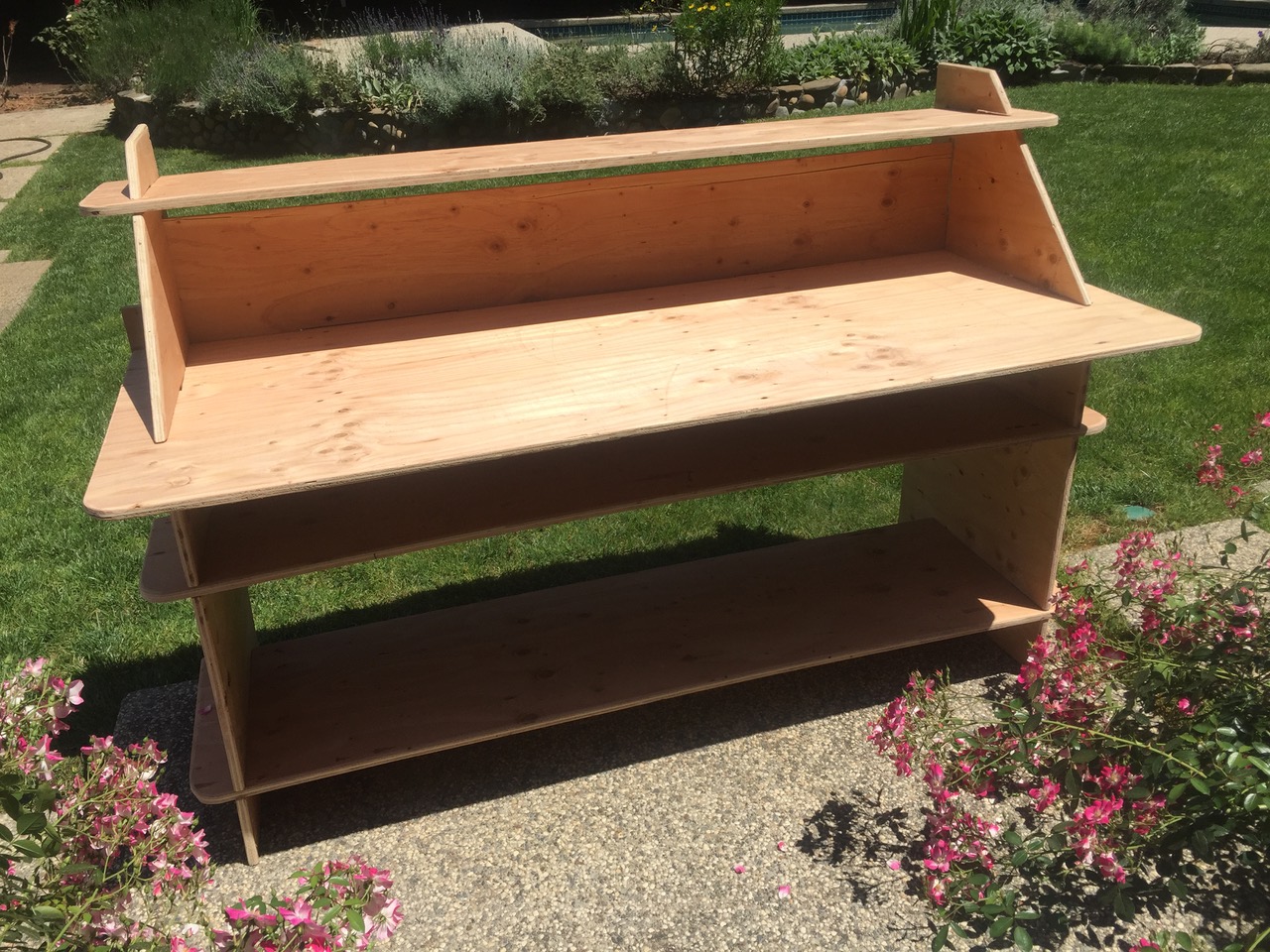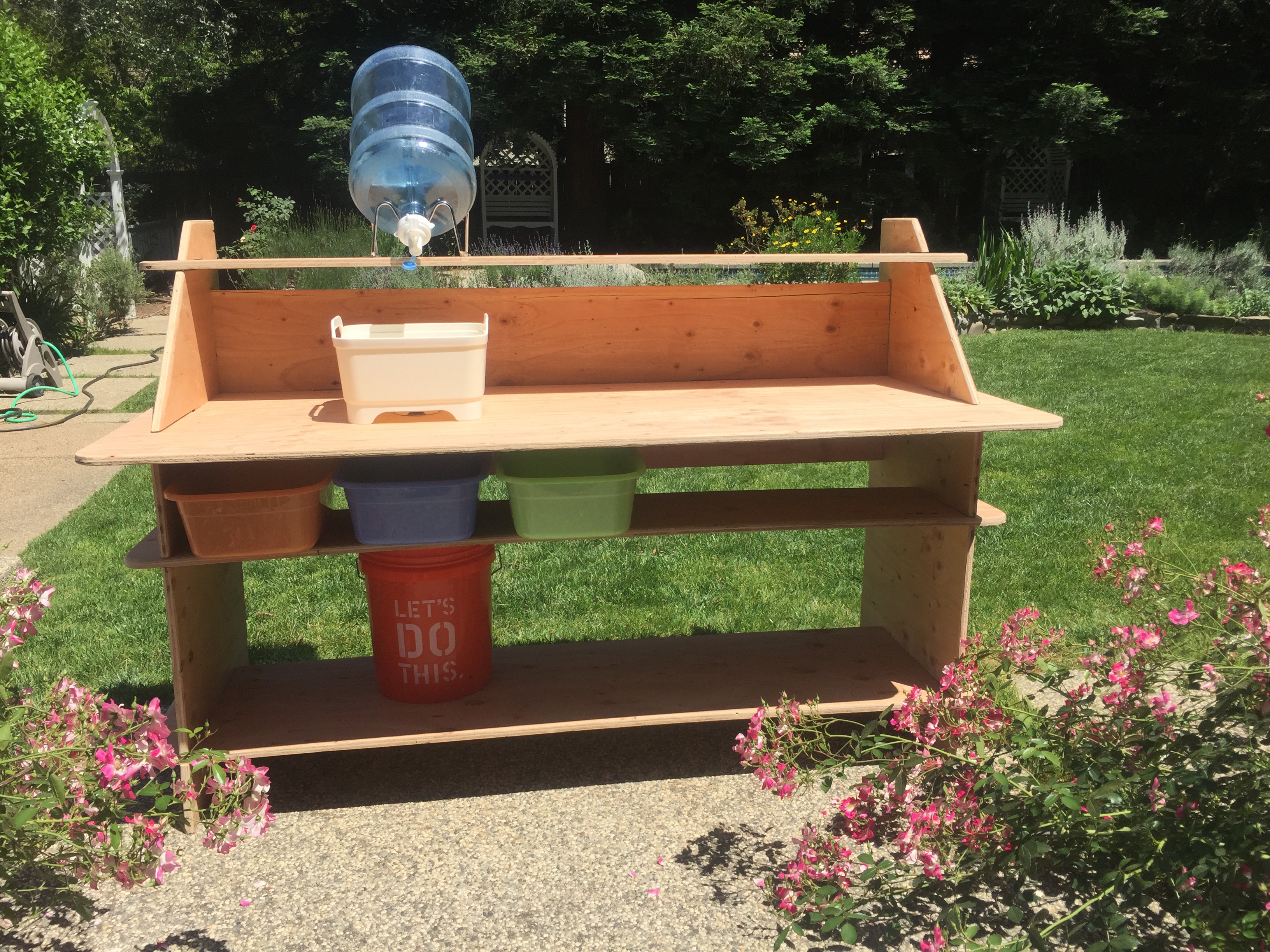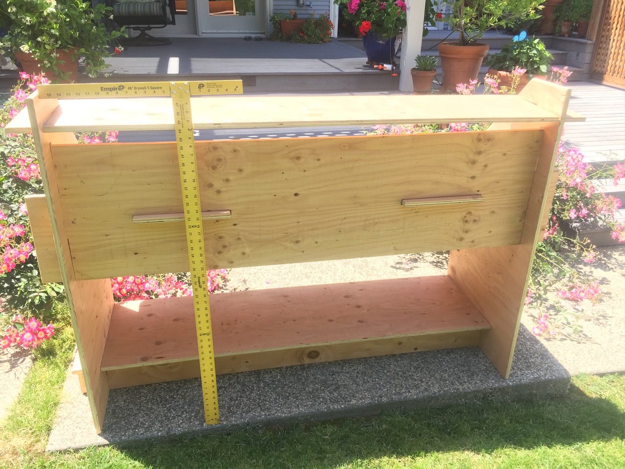 You know you’re a Burner when: your wife wants a potting bench for Mother’s Day, and after seeing the long parts lists of online DIY options you design one from exactly 2 sheets of plywood cut into 8 parts – then as you make it, you realize it will be a great playa kitchen! Or workbench. Or standing desk.
