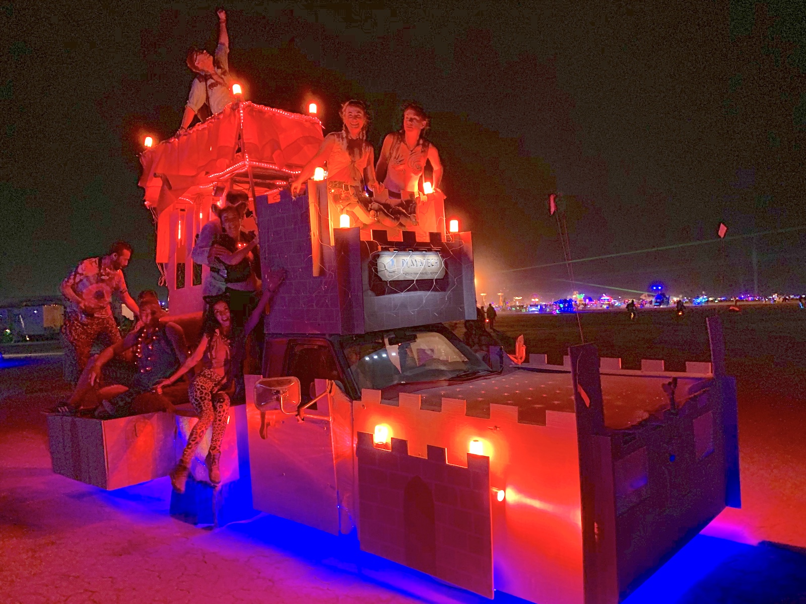 Playatech’s new mobile castle caused quite a little stir on playa its first year in 2016! DMV tracked Sunshine down 3 times to say that everyone from Rangers to a board member of Burning Man complained about the big corporate Playatech logo sign above the cab. And we laughed our heads off! With 10,000 rental truck and RV logos in BRC, they fell for a 12 year-old playa spoof that we didn’t even think newbies still believed:)